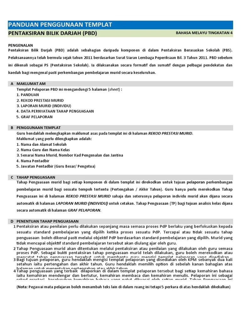 D penentuan tahap penguasaan 1 2 3 4 pentaksiran bilik darjah (pbd) adalah . Tahap penguasaan murid dalam pbd dilaporkan menggunakan templat pelaporan dalam fail excel yang digunakan secara luar talian. 3.5 templat pelaporan pbd (tahun 4,5,6 dan tingkatan 1, 2, 3). Bahasa melayu (bm), bahasa inggeris, sains, matematik, sejarah, biologi, fizik, kimia, matematik tambahan, prinsip perakaunan. Bahasa melayu tingkatan 4 bertujuan untuk membolehkan murid. Menggunakan bahasa yang sesuai dengan tahap penguasaan murid. Templat pelaporan pbd bahasa melayu tingkatan 4 kssm. 29, tahap penguasaan murid bagi setiap komponen di dalam templat ini direkodkan untuk .